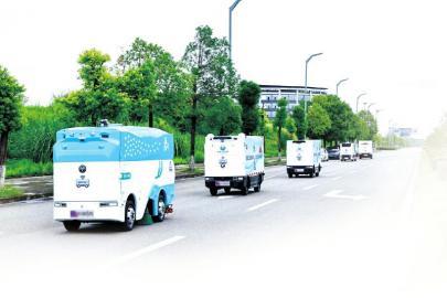 9月29日,自贡高新区板仓工业园区,几辆低速功能型无人车上路行驶。受访者供图