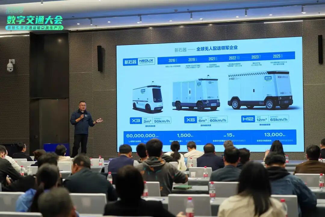 11月27日至28日,2025数字交通大会在横琴粤澳深度合作区隆重举行。大会聚焦“数智引领交通运输新质生产力”,汇聚政产学研用各界代表,共话数字交通创新实践。在此次大会上,新石器无人车作为全球无人配送领域的领先企业,携旗下创新产品X3无人集装车亮相,并受邀发表主题演讲,分享物流无人车领域的最新应用进展和未来发展趋势。