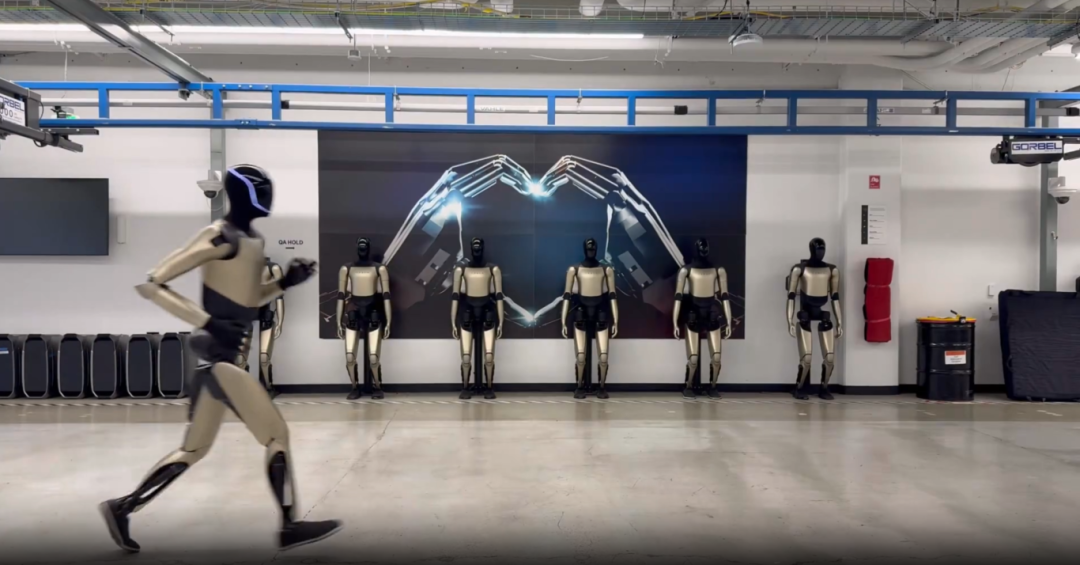 12 月 3 日消息,在特斯拉 Optimus 官方 X 账号发布的一段新视频中,Optimus 人形机器人正平稳地在其公司实验室中慢跑,周围是一排排正在插电充电的Optimus机器人。“刚刚在实验室刷新了个人最佳成绩(PR)”,账号配文写道。视频展示了Optimus的自然步态:晃动极小,稳定性远超早期版本。