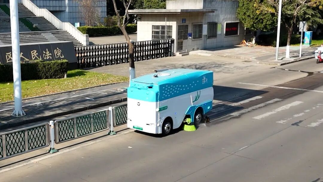 12月11日上午,在武汉经开区的一处测试道路上,几辆蓝白配色的无人驾驶洗扫机器人正缓缓移动。它们灵活绕开临时停靠的车辆,将落叶与纸屑“吞”入肚子中,同步完成喷水、洗扫。
