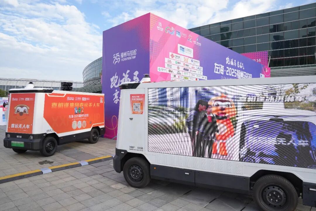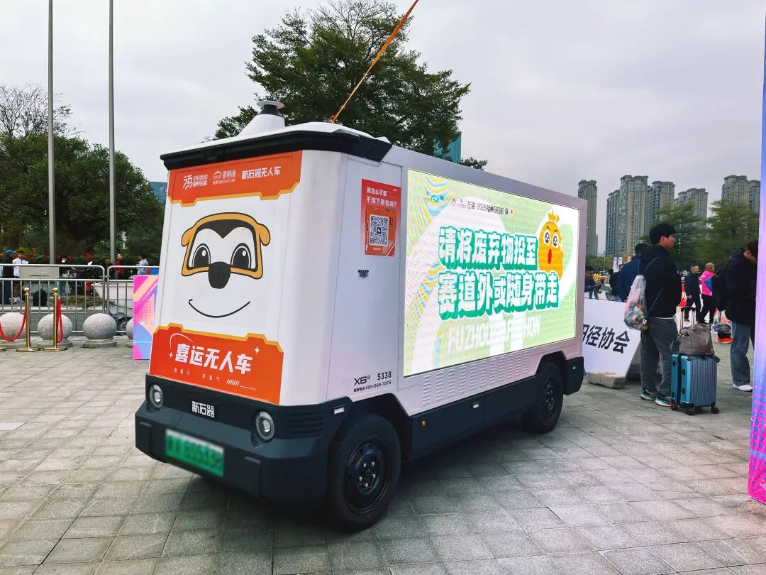 X6无人车作为新石器面向城市配送打造的主力车型,适用于高频、重复的物资流转场景。 赛前阶段,X6协助完成部分赛事物资运输与场地布置工作;比赛当日,则在终点区“换岗上阵”,化身为奖牌、奖品及赞助商物资的智能陈列与展示平台,陪伴跑者见证冲线后的荣耀时刻。 无人广告车则承担起信息传递与氛围营造工作。车身双侧LED大屏实时播放赛事信息、城市文化内容与温馨提示,在入口、赛道关键节点与终点区域有序流动。为现场观众与完赛选手提供清晰指引的同时,持续释放赛事活力。 在所有车型中,最具互动趣味的当属无人冰淇淋车。福州马拉松当天,它守候在比赛终点的海峡国际会展中心,为跑者及现场观众送上清凉补给。-18℃恒温守鲜,扫码即购,让科技服务在赛后时刻变得轻松、可感。 马拉松不仅考验跑者的耐力,也考验一座城市在高密度场景下的组织能力与运行效率。此次新石器携手喜相逢亮相福州马拉松,正意在将无人车放入真实、复杂的城市环境中进行验证。 比赛当天,新石器无人车并未集中亮相,而是分布在赛事检票口、赛道沿线加油点、终点区域等多个关键点位,围绕人流密集、节奏紧凑、需求明确的真实场景开展服务。无人车嵌入赛事服务,真正成为赛事运行体系中科技带来便利的一环。 在此之前,新石器无人车已先后服务杭州第19届亚运会、“戈20”第二十届玄奘之路戈壁挑战赛、“苏超”江苏省城市足球联赛等多项大型赛事活动,用前沿技术回应真实场景需求,让赛事服务更高效、更有温度。 践行科技向善,新石器持续拓展自动驾驶的应用边界,技术不仅要跑得远,还应走进广泛的城市服务与日常生活场景中。