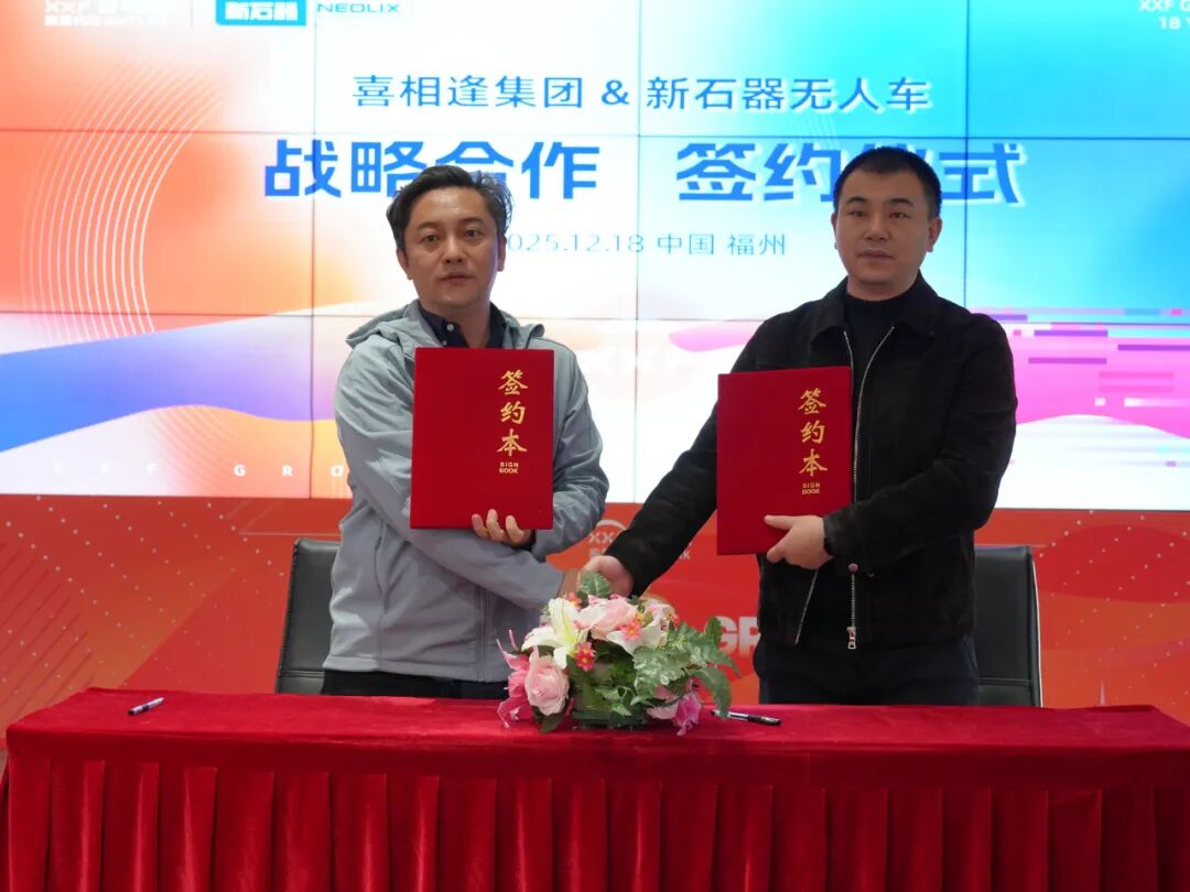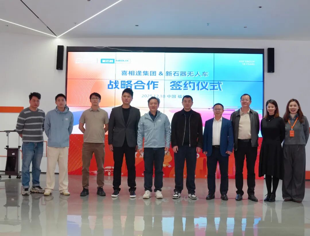 2025年12月18日,新石器慧通(北京)科技有限公司与喜相逢融资租赁集团有限公司正式签署战略合作协议。基于长期互信与共同愿景,双方确立全面战略伙伴关系,新石器将以自身技术优势为核心牵引,携手喜相逢集团加速无人车在物流配送领域的商业化落地与创新实践。