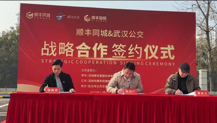 12月17日,顺丰同城旗下顺丰智联、顺丰同城(武汉)与武汉公交集团正式签署无人车战略合作协议,三方将跨界打造“公交+无人配送”创新生态。