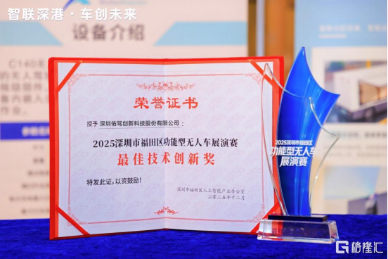 亮剑河套!佑驾创新斩获福田区无人车展演赛“最佳技术创新奖”