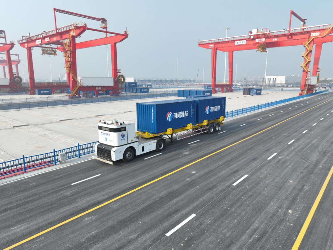 西井科技无人驾驶卡车Q-Truck助力河南周口港中心港区中心作业区正式开港