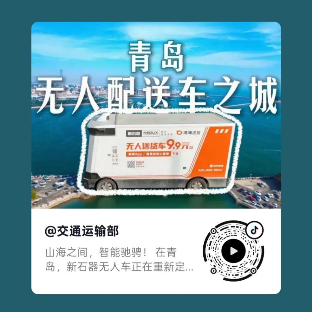海之间,智能驰骋!12月23日,交通运输部官方抖音号发布主题视频《青岛·无人配送车之城》