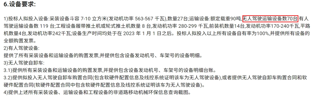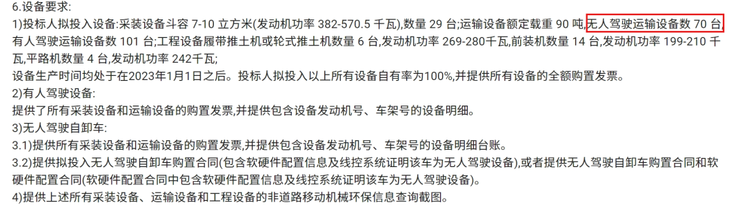 值得一提的是,本项目明确提出4个标段累计需部署无人驾驶设备不低于240台的要求。