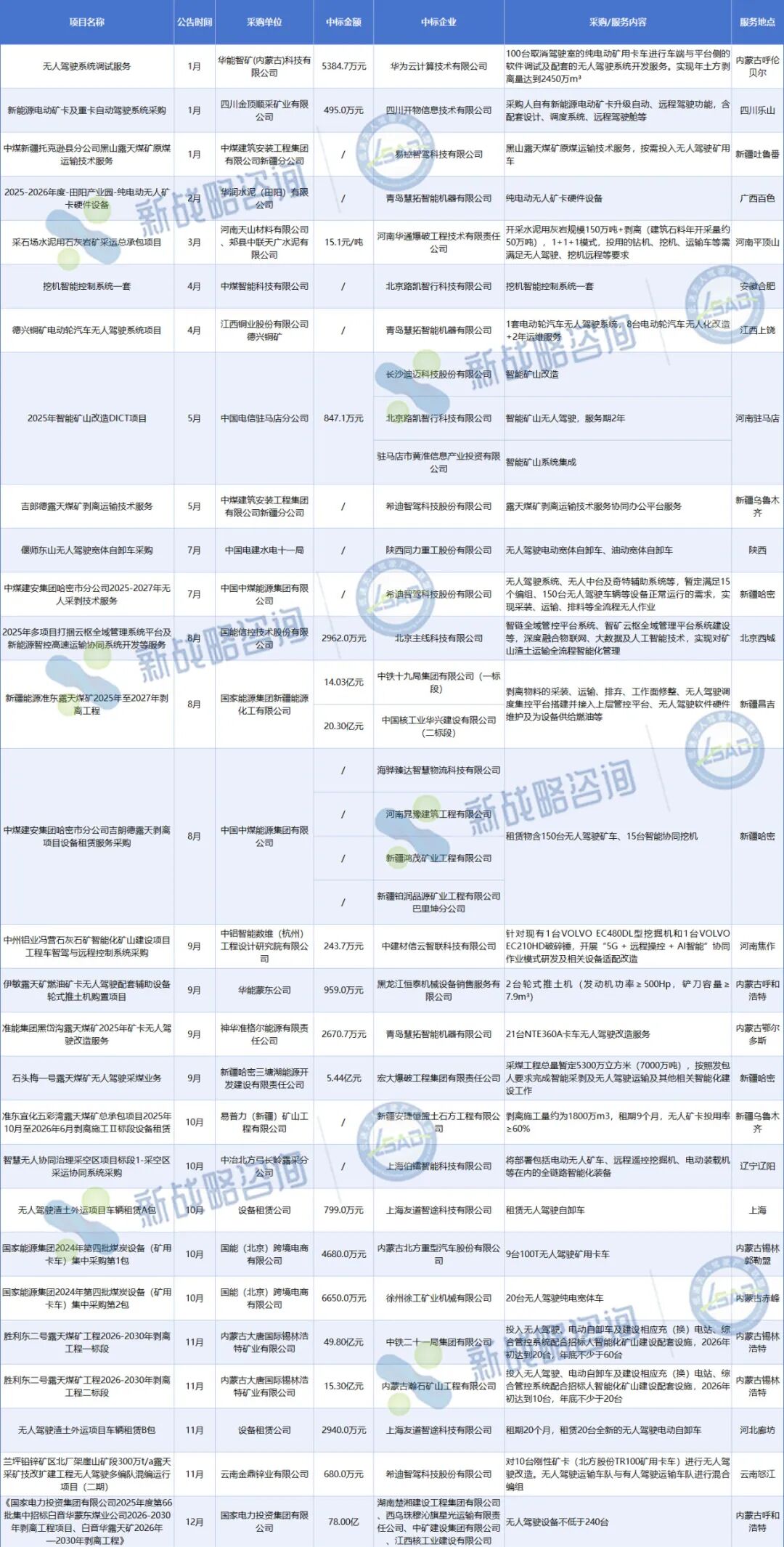 2025无人矿区领域涉及无人驾驶设备投用中标项目