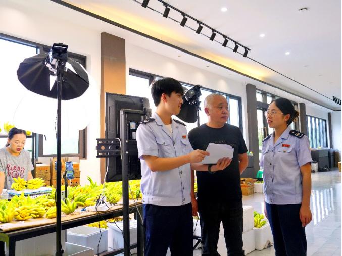 大足税务人员走进重庆市大足区鑫蕊琪农业发展有限公司,讲解涉农税费政策,提醒财务人员注意涉税风险。带动“农村电商”方便“直播带货”