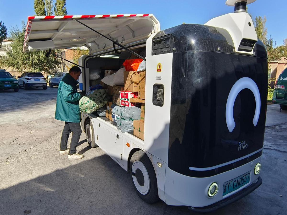 “太方便了我们!”新疆职业大学达坂城校区菜鸟驿站的理货员孜拉拉·斯地克江在谈及这一新变化时兴奋地说:“以前来回搬件、送件工作量很大,特别是大件包裹。现在有了这些无人车帮忙‘跑腿’,我们能把更多精力放在驿站的精细化管理和服务上,师生取件体验也更好了。”