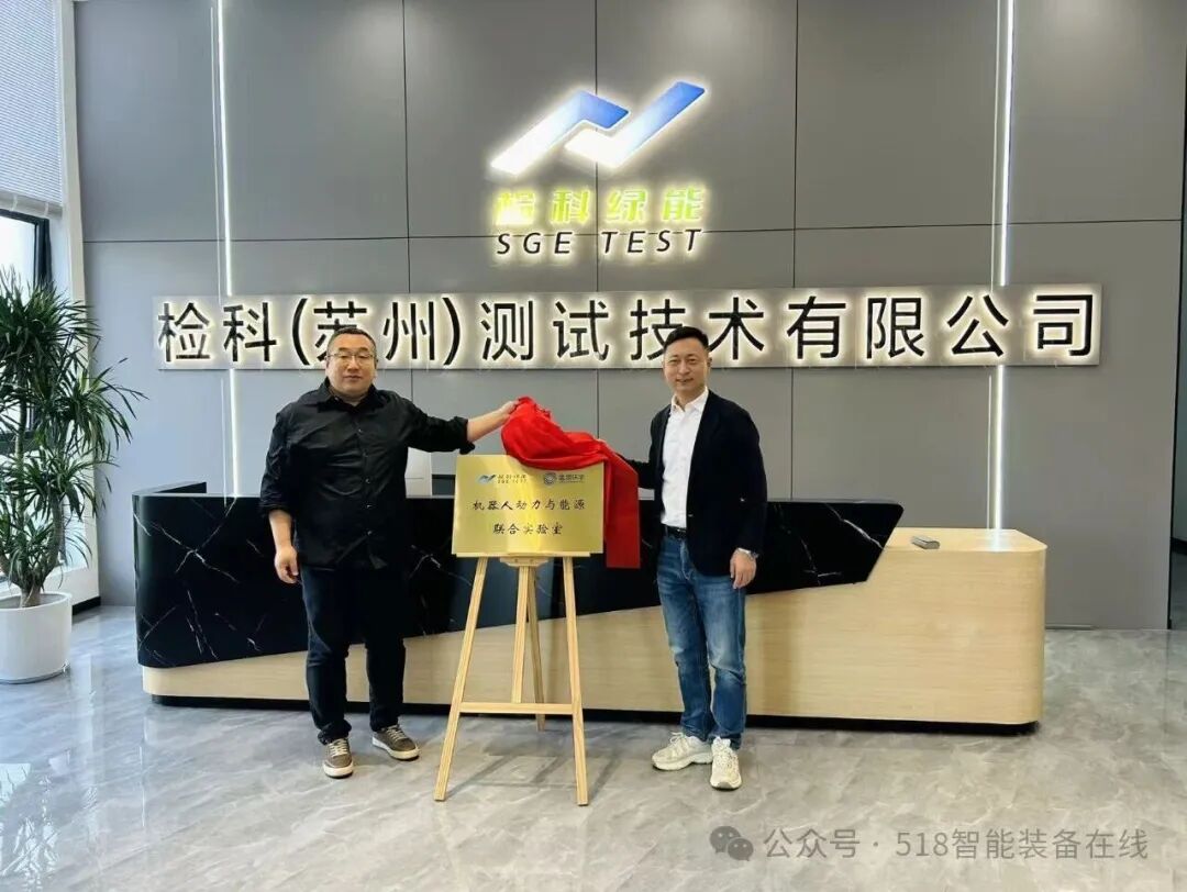 时不我待勇奋进,开拓进取谋新篇—— 10月25日上午,苏州金源环宇电源技术有限公司(以下简称 “金源环宇”)与检科(苏州)测试技术有限公司(以下简称 “检科绿能”)机器人动力与能源联合实验室签约暨揭牌仪式,在苏州吴中区机器人产业园举行。园区代表、科研团队及机器人和智能制造相关行业的企业代表等齐聚现场,共同见证双方在机器人电池领域的深度合作正式启航。机器人领域专业媒体518智能装备在线受邀出席本次仪式。