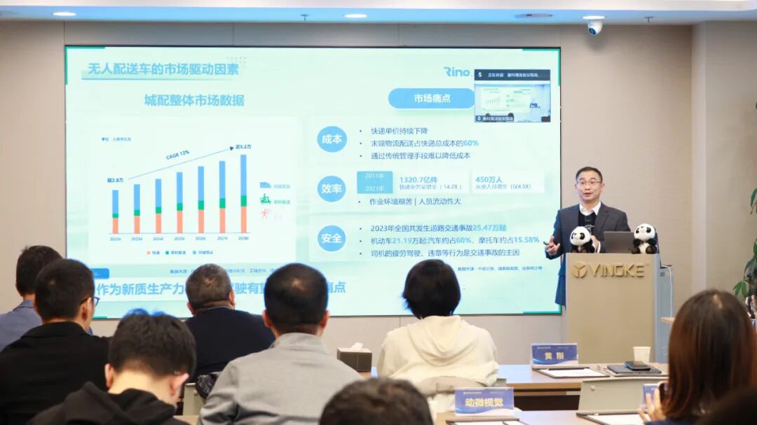 10月28日,白犀牛总裁黄刚受邀出席京港车机人创新发展交流会沙龙并发表演讲,介绍了当前无人配送行业规模化运营成果,以及白犀牛无人配送的商业化实战案例。在实践中,白犀牛无人车凭借领先的L4自动驾驶能力,能够为城市公开道路提供全天候、全路况的无人配送解决方案。
