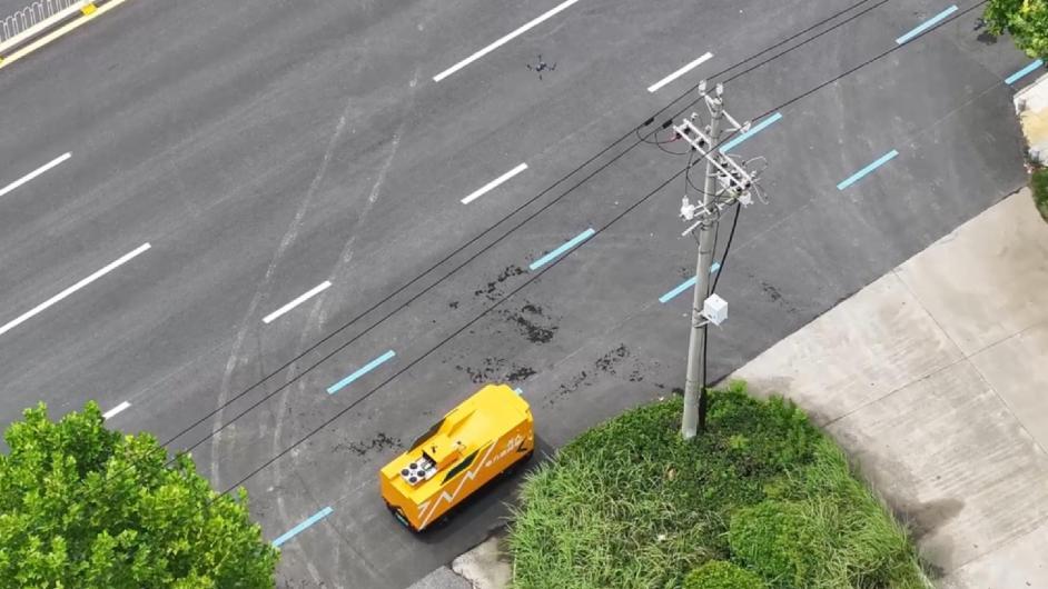 在湖北武汉市经济技术开发区的大道上,人们时常会看见一辆黄色的无人电力巡检车。它缓慢行驶在路上,到达指定地点停稳后,车顶“天窗”缓缓打开,一架无人机迅速升起,进入“空中侦察”状态。