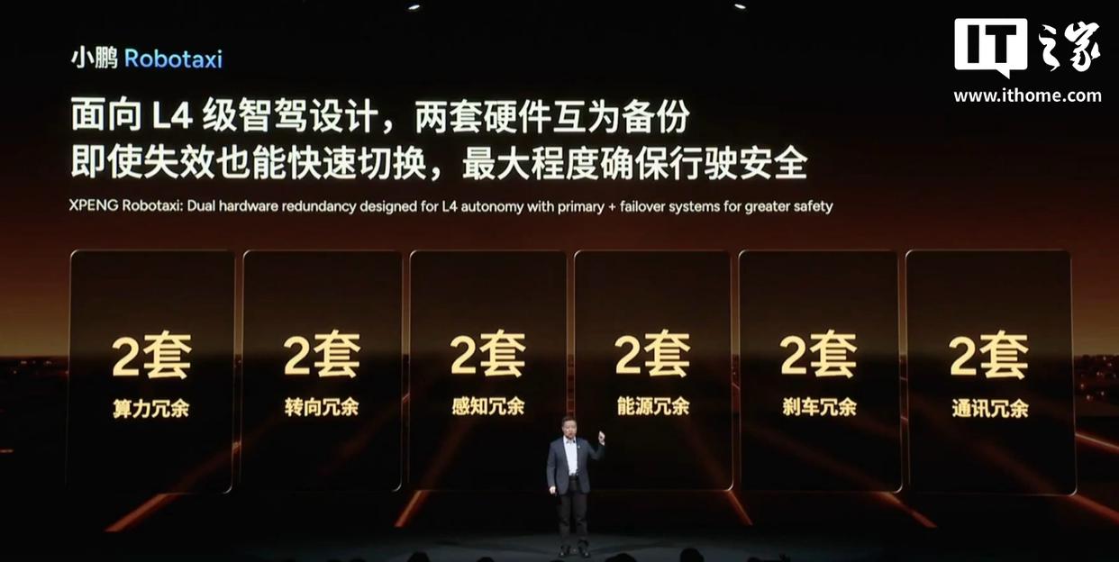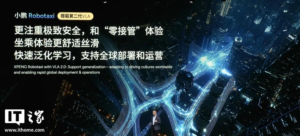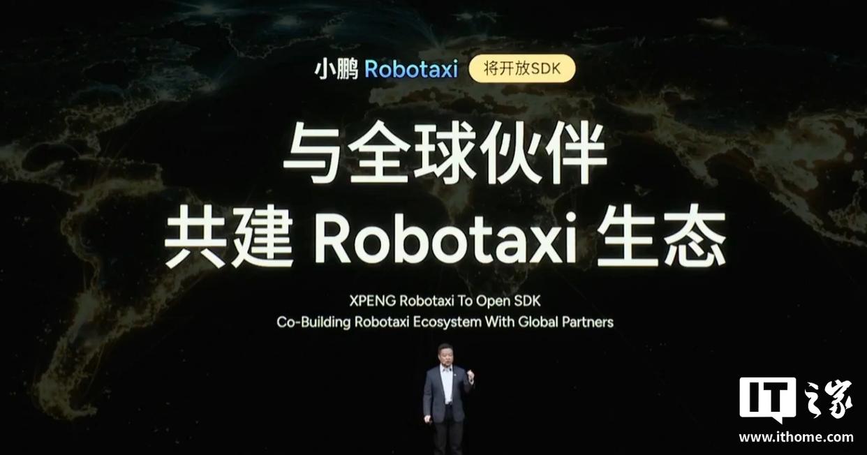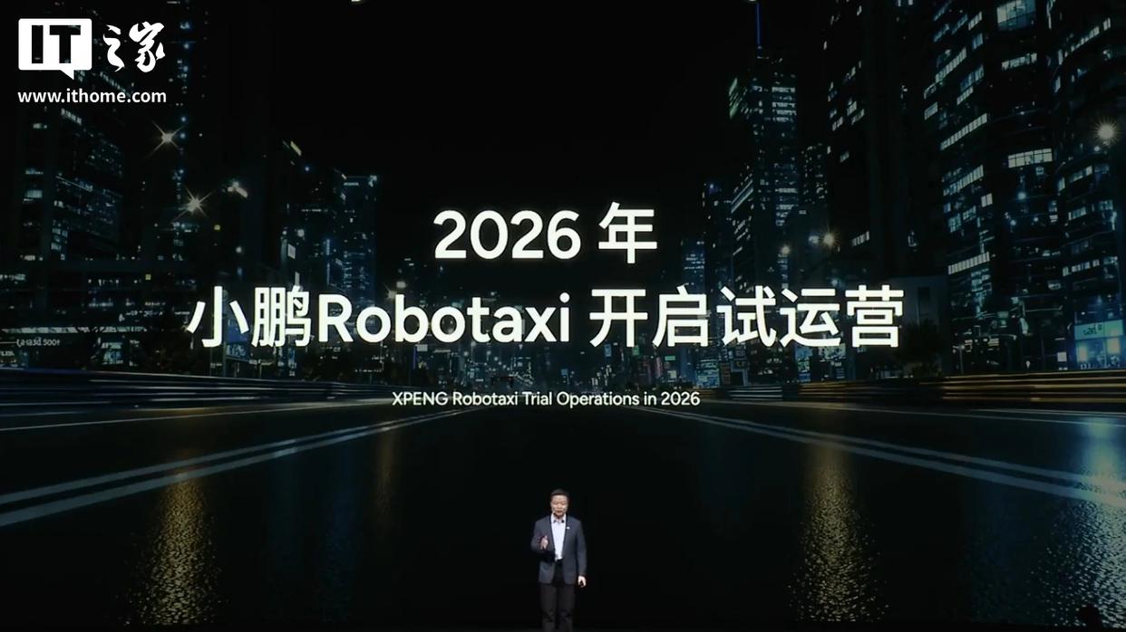 IT之家从活动直播获悉,小鹏 Robotaxi 宣称是“中国首款全栈自研量产的 Robotaxi”,将于 2026 年在广州等多个城市开启试运营。