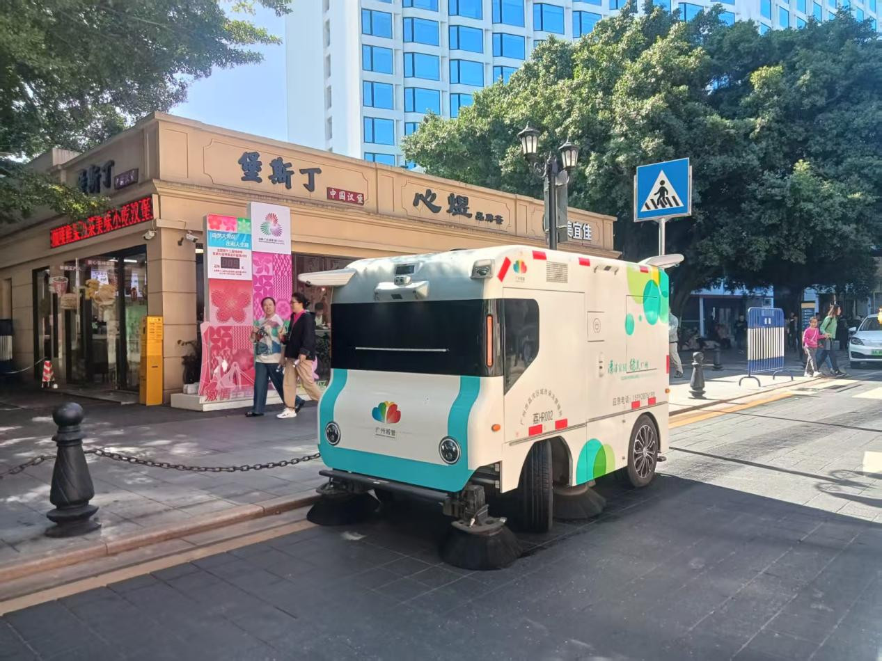 清晨的沙面岛,石板路旁一辆蓝白色无人驾驶清扫车缓缓驶过。扫刷以厘米级精度紧贴路沿高速转动,落叶、尘土瞬间被悉数吸入“腹中”;若遇晨练市民,车辆便自动减速避让,避让完成后随即精准回归作业路线—这是荔湾区启用无人驾驶清扫车作业时的生动场景。近日,广州市荔湾区在全市率先推出以无人设备为核心的市政道路清扫新模式,10台无人驾驶清扫车正式“上岗”,为城市环境治理注入智慧动能,推动洁净家园建设迈入高效精准的智能化新阶段。