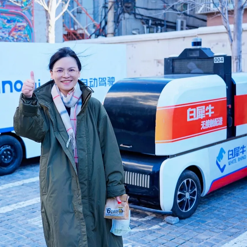 “经我测试,我们的车非常靠谱,雷达和摄像头就是它的眼睛,算法就是它的大脑,再加上底盘和网络,一整合就能顺利开跑了。” 经过全流程多方位的质量把控,换来我们的车在真实道路上每一次的从容不迫。 4. 哪一次工作经历,让你觉得“在无人车公司工作,真挺酷的”? 一次远程跟车测试时,我在监控平台看到一位老奶奶熟练打开无人车取走一大包快递,关上车门后车辆准备发车,奶奶还轻轻拍了拍车身。那一刻忽然觉得,我们做的从不是冷冰冰的技术,而是真正能走进生活、改变生活的美好未来,这种感觉特别酷。 入职不到一个月时就随研发大部队出差进行封闭开发,同事们毫无保留的为我讲解自驾专业知识与公司内部自驾方案,使我成长迅速,这种管理模式和公司氛围真的很不错! 你会越跑越稳越跑越快,穿过风雨,路过黄昏,愿你运送的不只是货物,更是生活的信心与希望。 运营算是技术走向商业的桥梁,一句话总结:兜住用户体验的底,铺好商业落地的路。 3. 有没有哪一次工作经历,让你觉得“在无人车公司工作,真挺酷的”? 有一次打车,司机看到路上跑着一辆无人车,脱口而出:“这家伙跑得真快,个子还比上次大了!”那一刻我心想:这家伙是我们养的呢。 每当遇到紧急的项目,大家总能快速对齐目标、互相补位,那种“一起扛事”的默契,让我觉得这家公司真的很不错。 去年冬天,看着我们的无人车能在东北冰雪路面上跑起来的时候,感觉很酷! 有一次周末紧急对应一个项目,比较焦灼时候,一位同样在奋斗的同事立马帮我一起分析问题思考对策,最后很好的解决了该问题。这种同事间热心帮忙和并肩作战的氛围让我感觉真的很好。 从2019到2026,从初创探索到稳步前行,白犀牛的每一步成长,都镌刻着这群女性的印记。她们的默默耕耘和奋力拼搏,展现了新时代女性的独立、自信与担当。 柔肩亦能担重任,微光亦可聚星河。愿白犀牛的每一位她,永远心怀热爱、步履不停,在自己的领域闪闪发光;也愿这份温暖而坚定的女性力量,继续与白犀牛并肩同行,共赴更远征程,共启更多美好。
